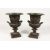 A GOOD PAIR OF CLASSICAL TWO HANDLED BRONZE URNS on square bases