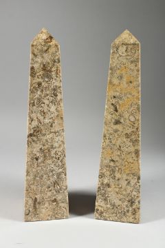 A GOOD PAIR OF SPECKLED MARBLE OBELISKS