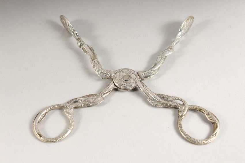 A PAIR OF CAST LEAF DESIGN SUGAR NIPS.
