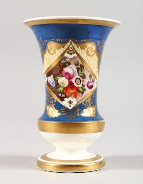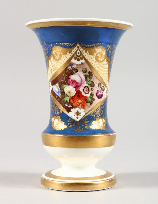 A GOOD 19TH CENTURY ENGLISH SPILL VASE edged in gilt and painted with flowers