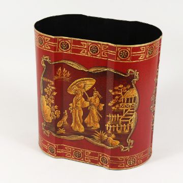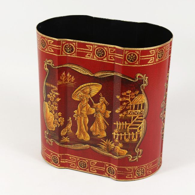 A CHINESE DESIGN RED TOLE WARE BIN