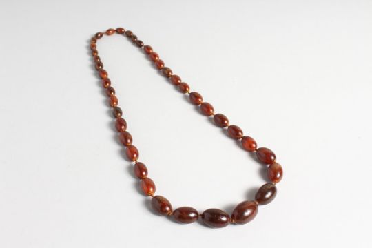 AN AMBER BEAD NECKLACE, 32 inches long