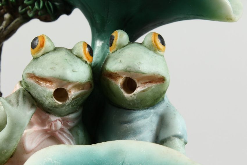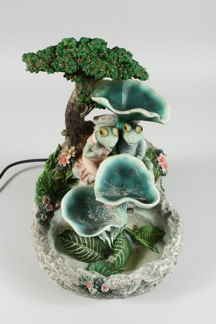 A FROG AND TORTOISE WATER FEATURE, 14 ins high.
