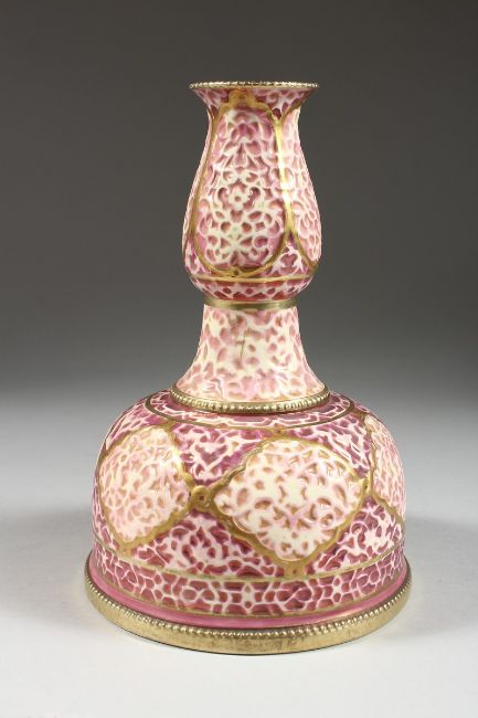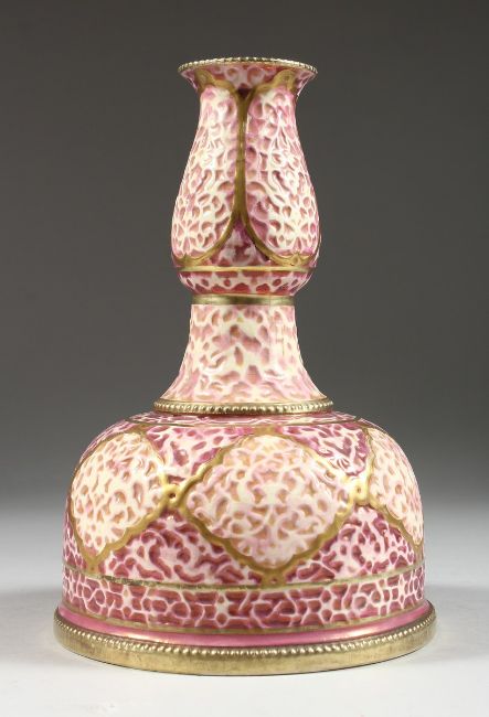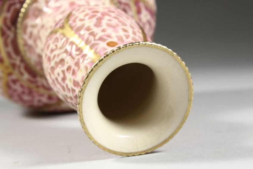 A ZSOLNAY MALLET SHAPED VASE, impressed Zsolnay no. 2847 and printed mark,