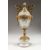 A HOBNAIL CUT ORMOLU MOUNTED TWO HANDLED VASE with pineapple finial