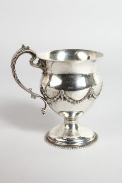 A CLASSICAL SILVER PEDESTAL MUG with garlands