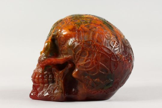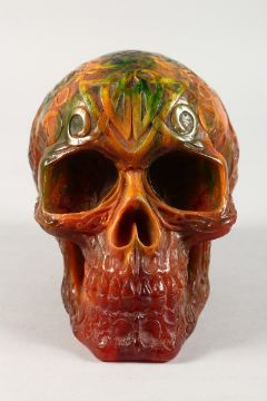 A CARVED AMBER SKULL