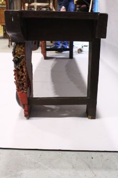 A LONG 17TH / 18TH CENTURY CHINESE ALTAR TABLE, the base carved and pierced with flowers and dragons, 8 ft. long x 1 ft. 8 in. deep x 2 ft. 2 in. high.