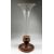 A LARGE FACETED GLASS TRUMPET-SHAPED VASE set into a circular wooden base, 2 ft. 9 in. high.