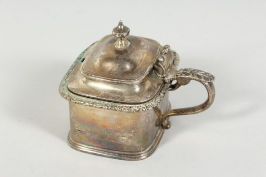 A GEORGE IV SILVER RECTANGULAR MUSTARD POT AND COVER, London 1824, maker I.D.& A.D. Weighs 8 oz.