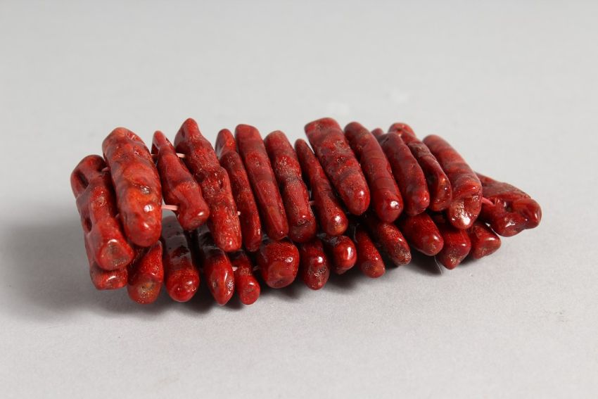 A CORAL ELASTICATED BRACELET.