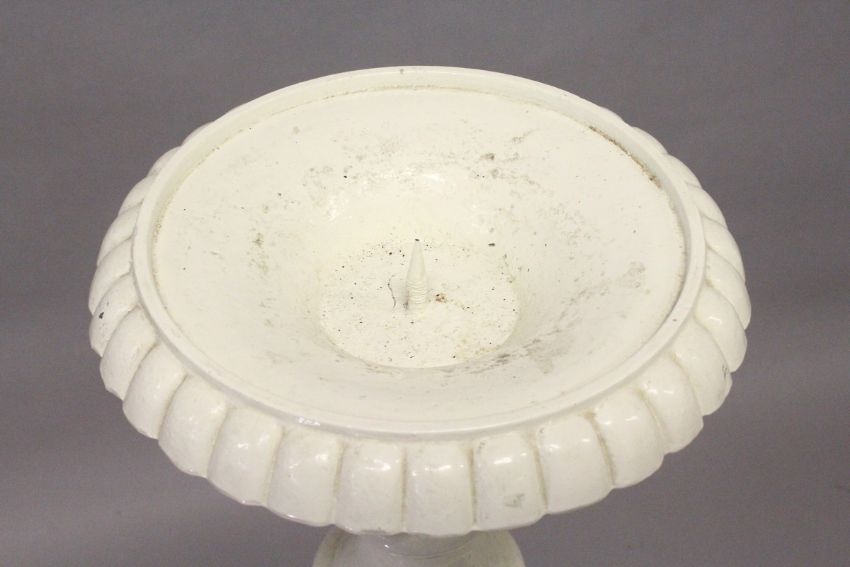 A GOOD PAIR OF VICTORIAN WHITE PAINTED CAST IRON STANDS, fluted columns on pedestal bases.