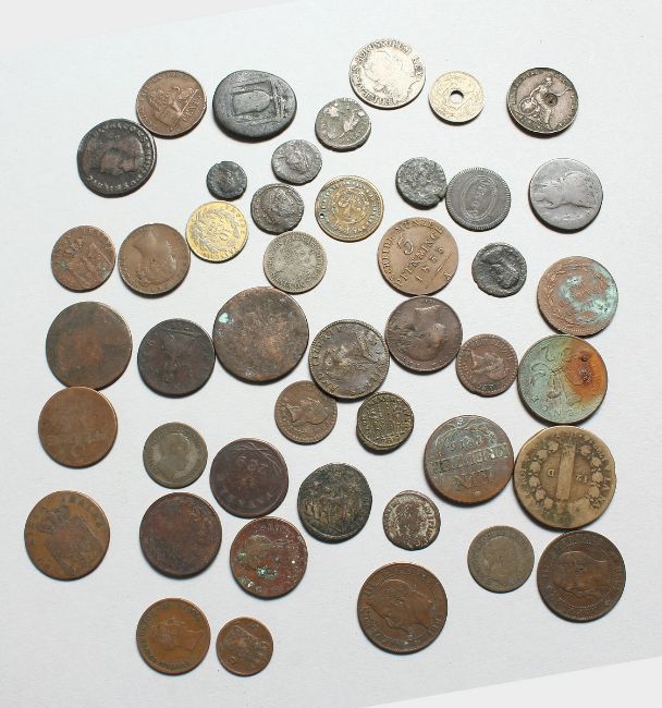 A MIXED LOT OF TOKENS AND COINAGE SOME ROMAN AND EARLY ENGLISH