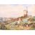 Arthur Foster, A foxhunting scene with huntsman and hounds in a country landscape with a windmill beyond, watercolour, signed, 14.5" x 19.5".