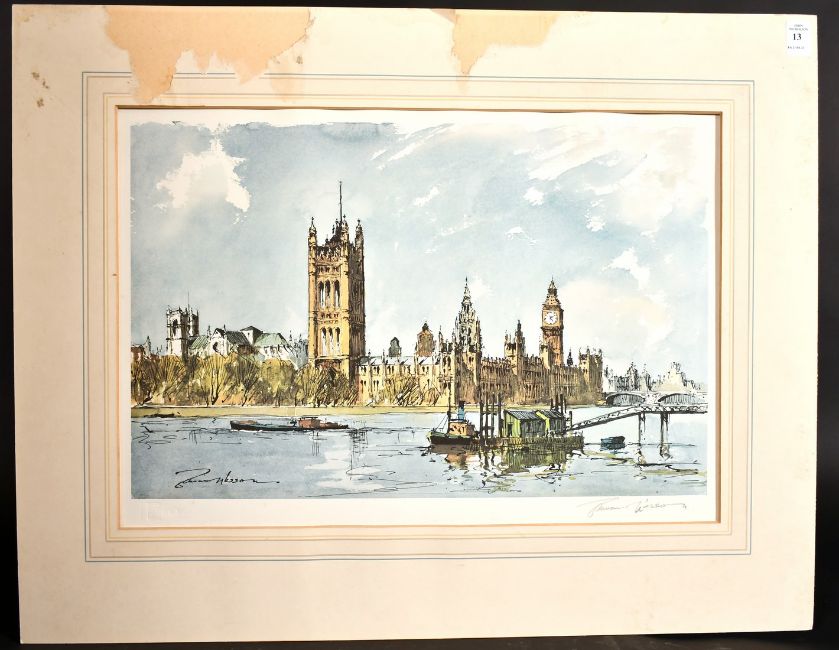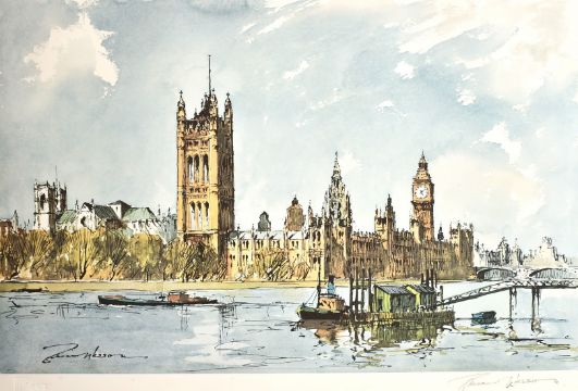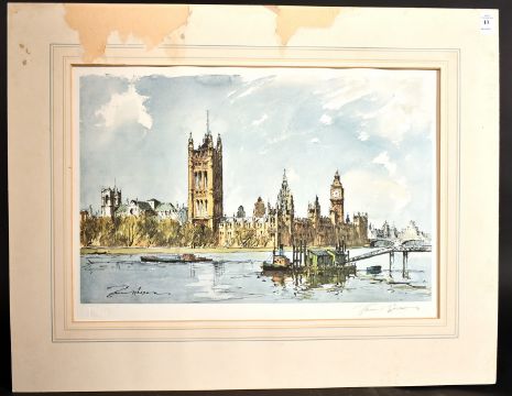 Edward Wesson (1910-1983) British, 'Westminster from Lambeth Bridge', limited edition, signed in pencil, 14" x 20".