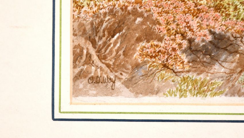 Charles Jones Way (1834-1919) British, Wayfarers conversing by fields in an Alpine landscape, watercolour, signed, 12" x 17".