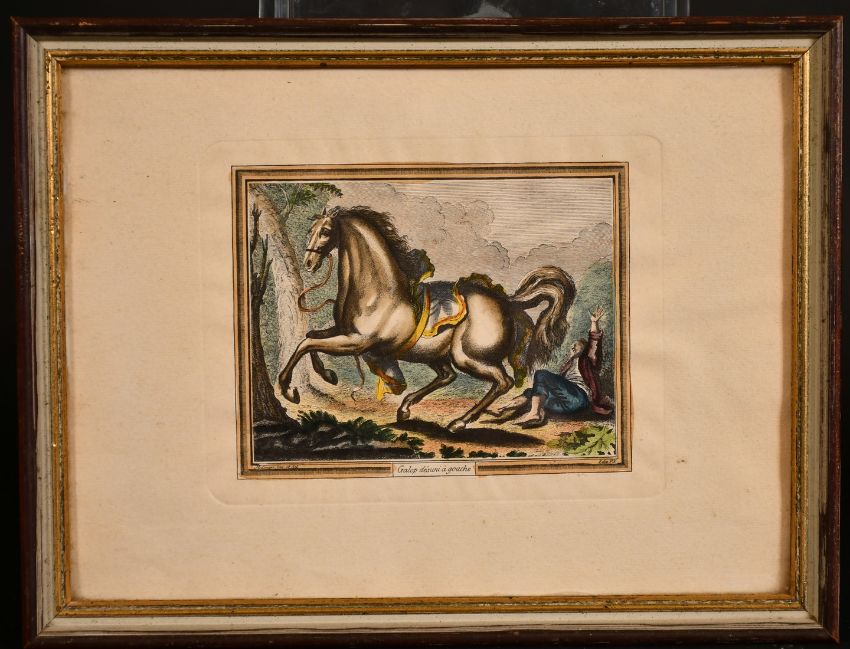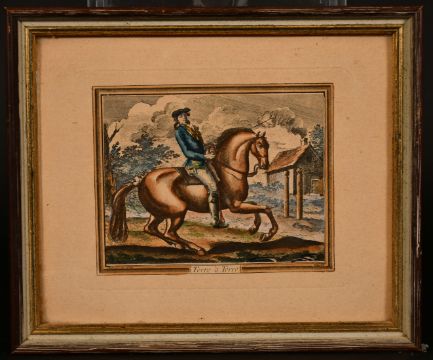 A collection of equestrian prints including 'Terre a Terre' and 'La Capriole', inscribed, all 4.5" x 5.75", (10).