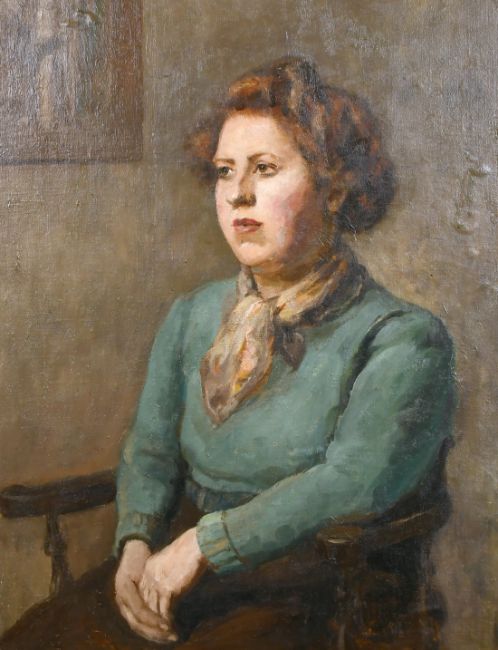 Early 20th century school, A portrait of a seated lady in an interior, oil on canvas laid down, 29" x 22".