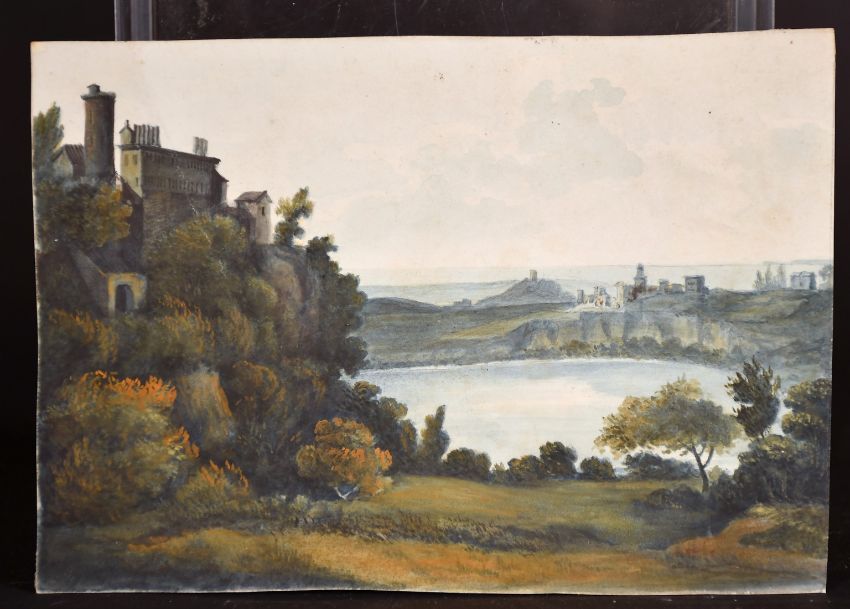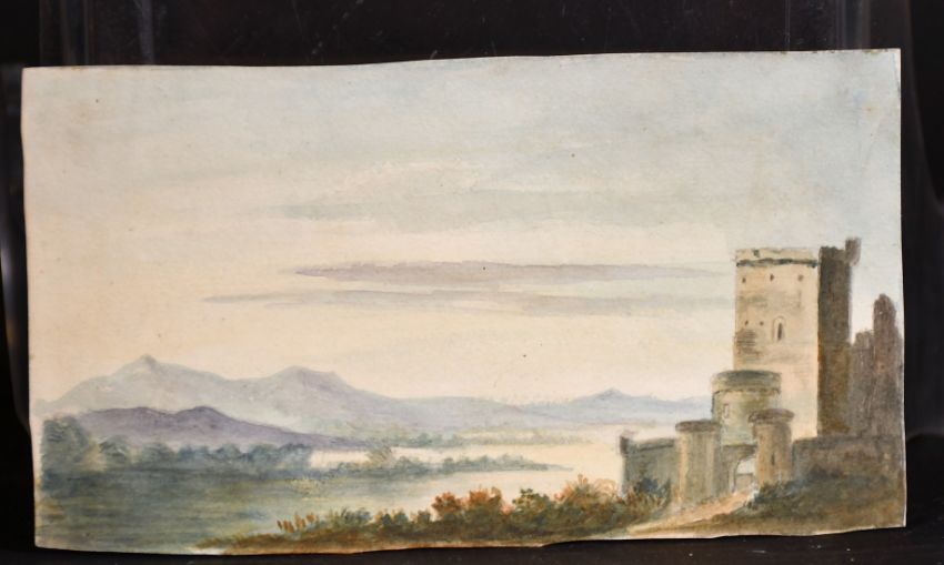 Circle of John Varley, A tower in a landscape and another possibly by a different hand, watercolour, one 5.25" x 7.5" the other 3.5" x 6.25", (unframed), (2).