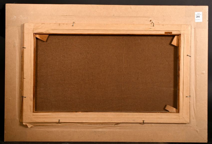 Late 19th century school, A scene of a highland lake at dusk, oil on canvas, indistinctly signed, 12" x 20".