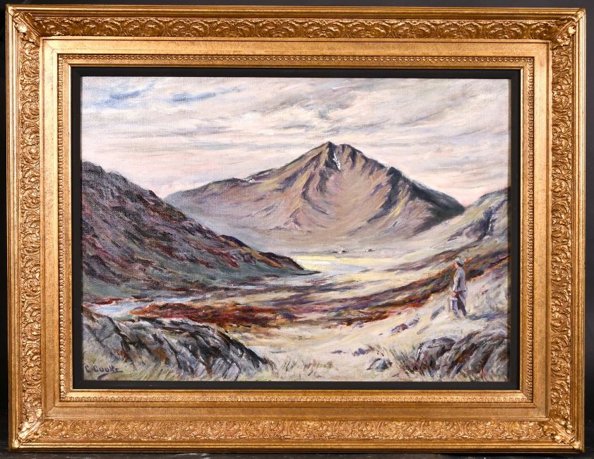 C. A. Cooke (early 20th century) A figure walking towards a mountain stream, oil on canvas, signed, 16" x 22".