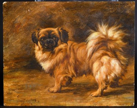 20th century, A study of a dog, oil on panel, indistinctly signed, 8" x 10", (unframed).