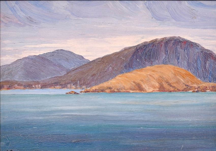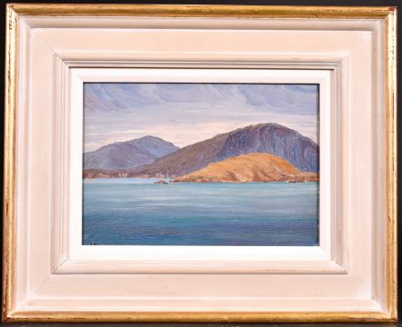 Attributed to Langdon Smith (1870-1959) American, A Mediterranean view (1930), oil on board, signed with initials 'LS', 7" x 10".