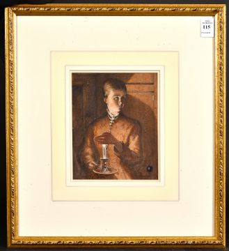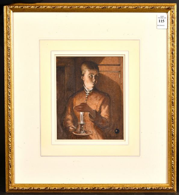 Follower of William Henry Hunt, O.W.S. (1790-1864) British, A young lady with a candle, watercolour with pencil heightened with bodycolour, 22.5 x 15 cm