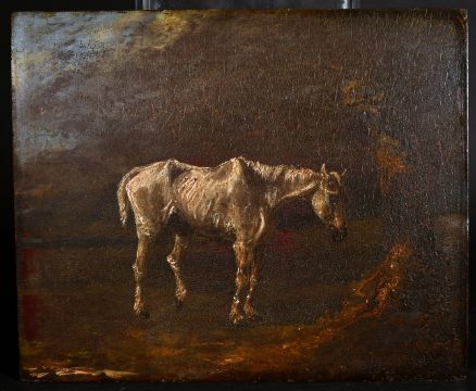 H. Alken (19th century) British, A white horse in a landscape, oil on panel, signed and dated '1838', 10.25" x 12.25".