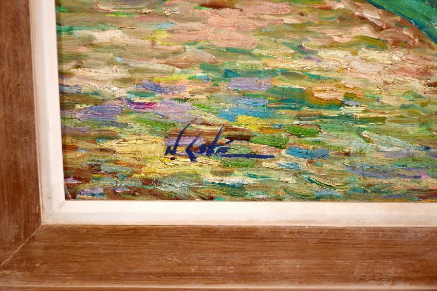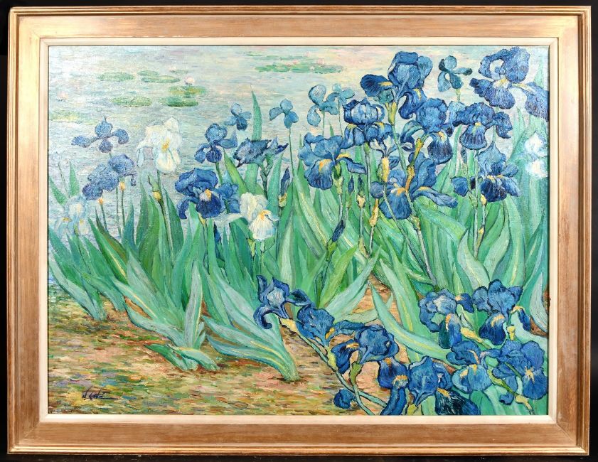N. Cote (20th century) After Van Gogh, A scene of lilies by a pond, oil on canvas, signed, 30" x 40".