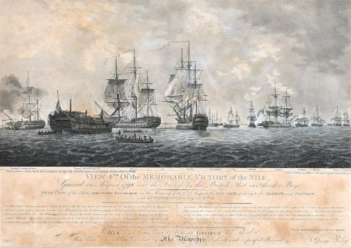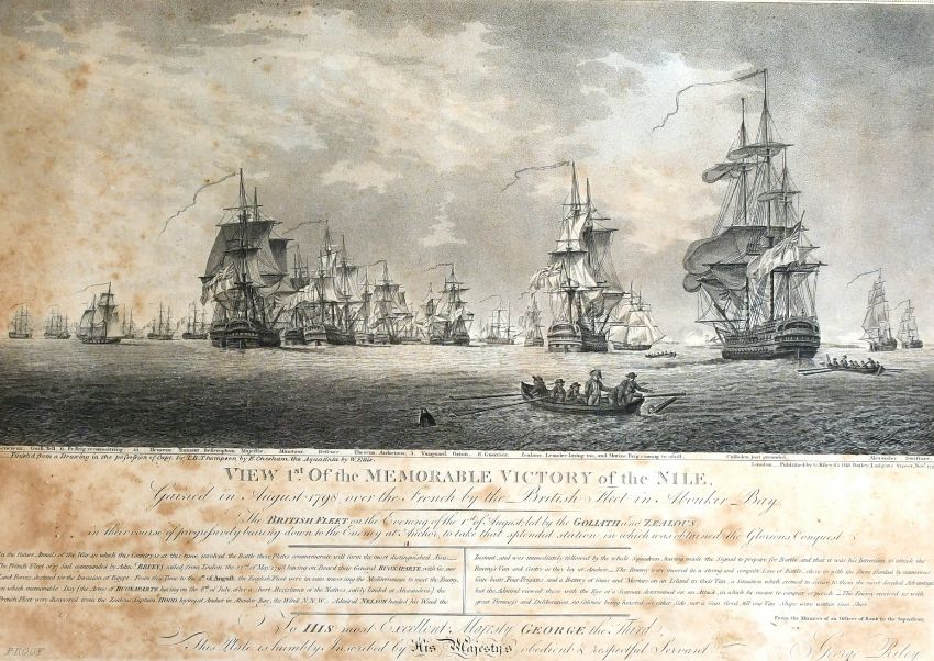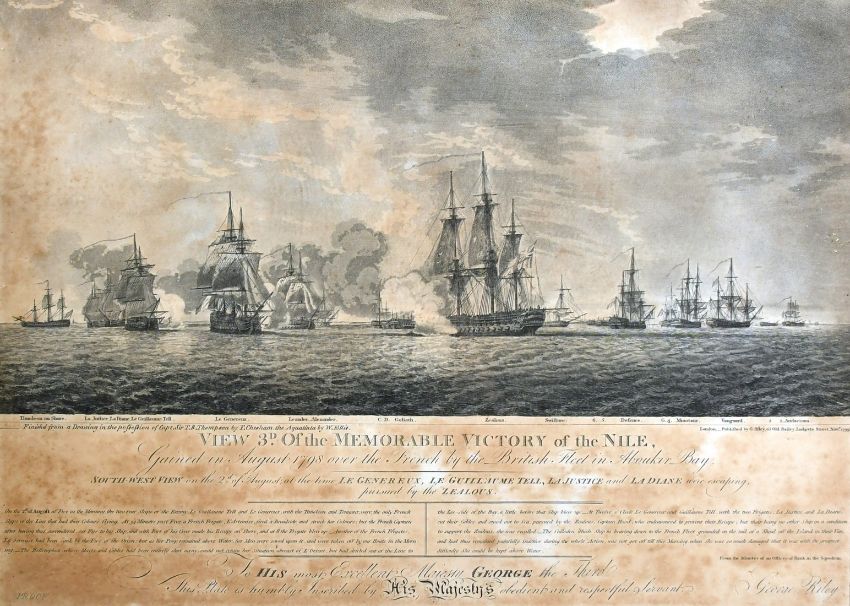 Four views of the 'Memorable Victory of the Nile', By W. Ellis published by George Riley, each 12.5" x 16.5".