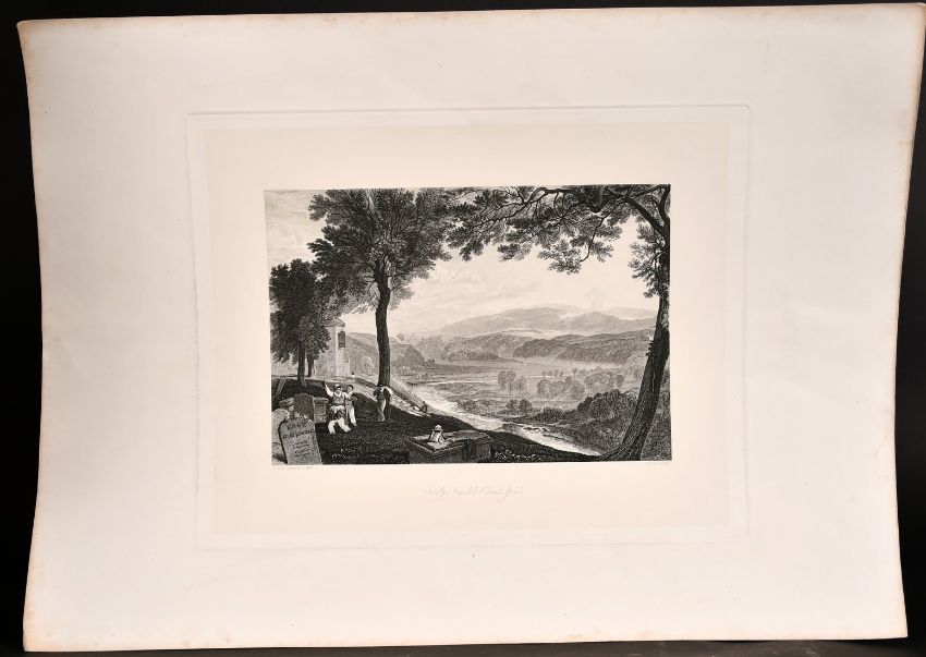 Three 19th century engravings after Turner with mountainous river landscapes including 'Mofs Dale Fall', engravings variously inscribed, all 11" x 14", (unframed), (3).