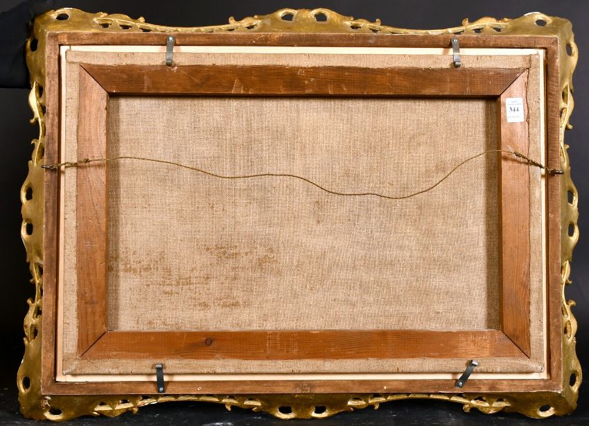 19th/20th century Dutch school, figures skating on a frozen waterway with a town and windmill beyond, oil on canvas, indistinctly signed, 16" x 24", in a fine gilt composition frame.