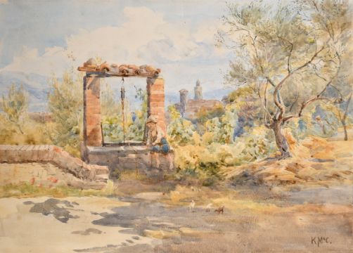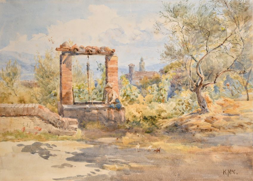 K. McCrackin, 'An Idle Moment', watercolour, inscribed verso, unframed, 10.5" x 14.5".