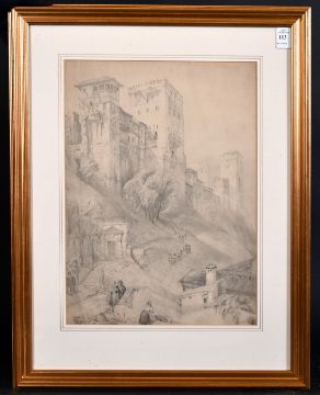 After David Roberts R.A. (1796-1884) British, The Tower of Comares, La Alhambra, Granada, (after plate 10, Picturesque Sketches of Spain, London (1837), pencil on cream paper, 40 x 29 cm