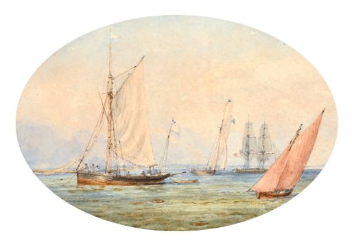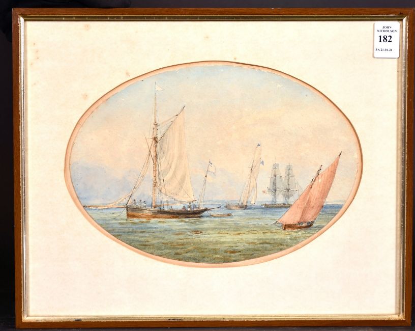 Admiral Sir Charles Burrard (1793-1870) British, A maritime scene with boats on calm waters, watercolour, inscribed verso, 7" x 10", (oval).