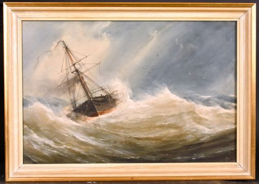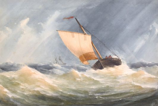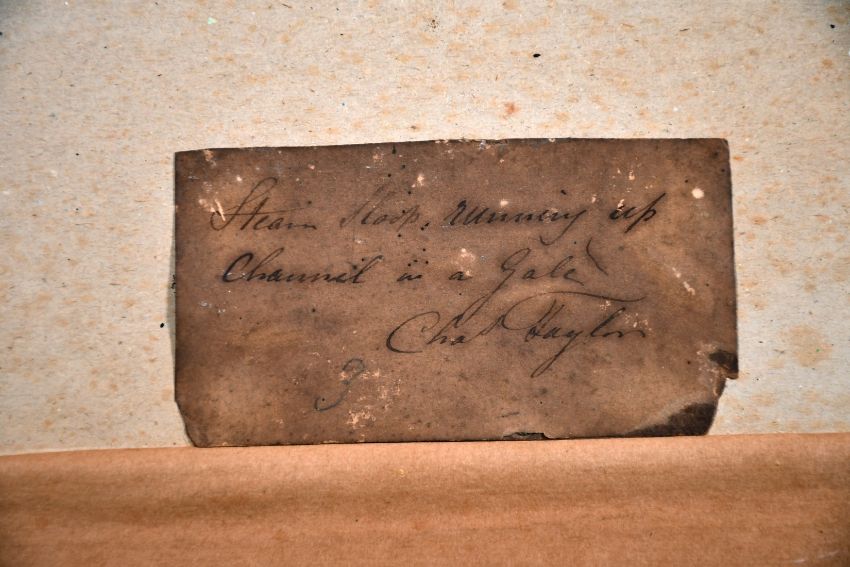 Charles Taylor (19th century) British, 'Steam Sloop Running Up Channel in a gale', and 'Pilot Lugger in a Fresh Wind', watercolour, with old labels verso, each 14" x 21".