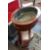 A French red painted and ormolu mounted oval jardiniere on column supports.