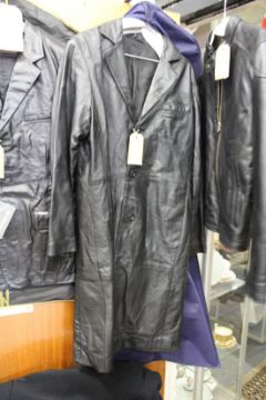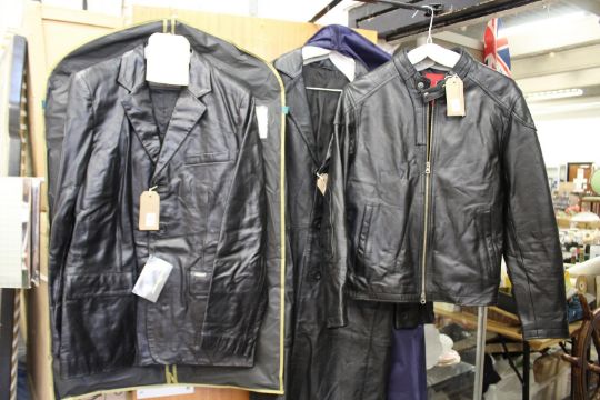 A Ben Sherman black leather jacket, size small, and two similar items.