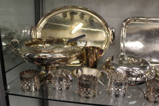 A large quantity of plated items.