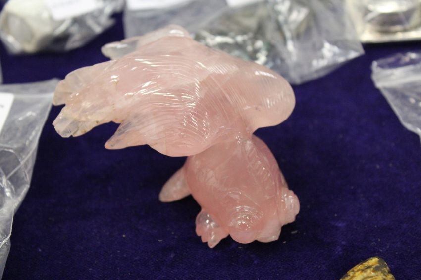 A Chinese rose quartz model of a fish.