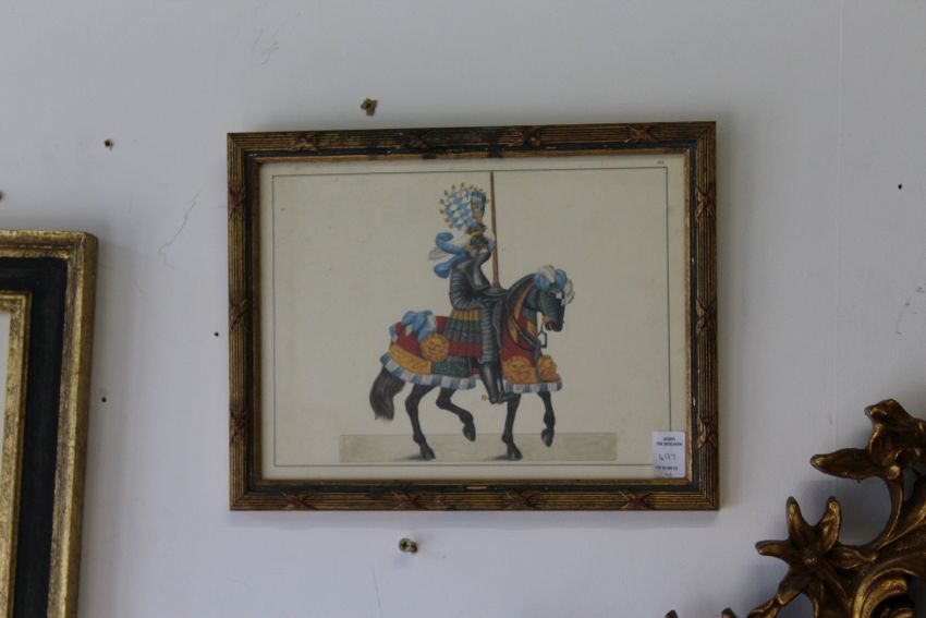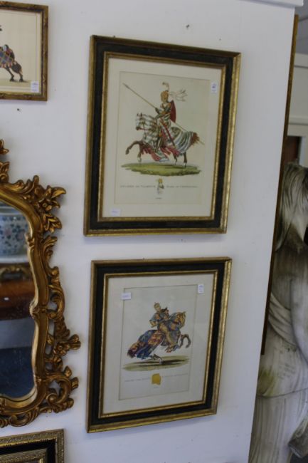 A set of four colour prints depicting Knights in Armour and a pair of smaller similar prints.