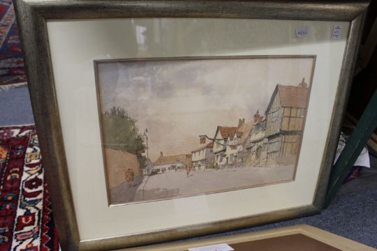 Montague Webb Street Scene in Wingham, Kent watercolour, together with another watercolour of a church and churchyard.