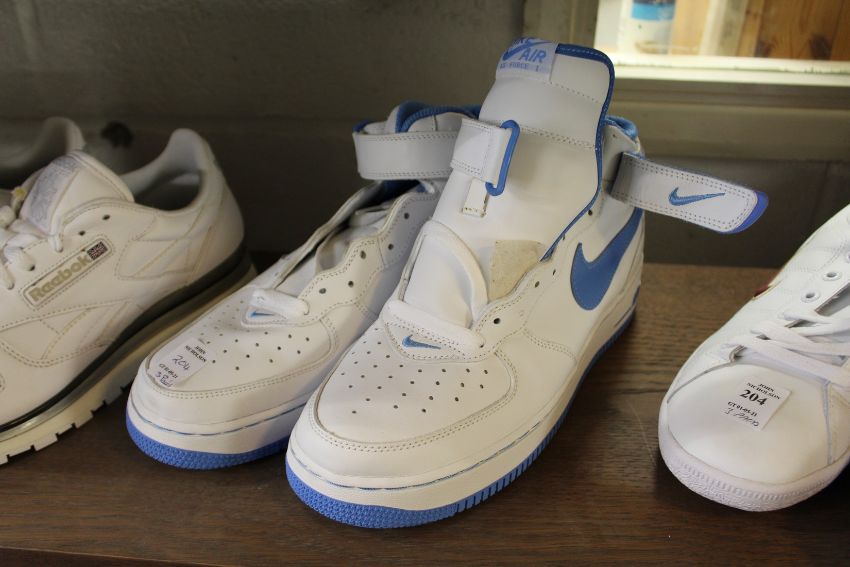 Three pairs of trainers to include Nike Airforce 1, size 9, appear unused.