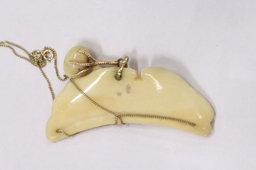 An unusual Chinese carved necklace and chain, possibly gold and horn.