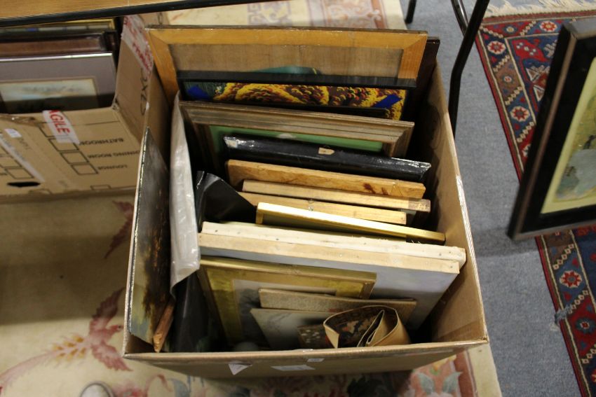 Khaled Al-Rahal Figures Driving Horned Cattle oil on plaster (some losses) together with a quantity of paintings and prints.