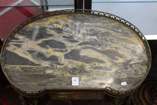 A French marble topped two tier occasional table.