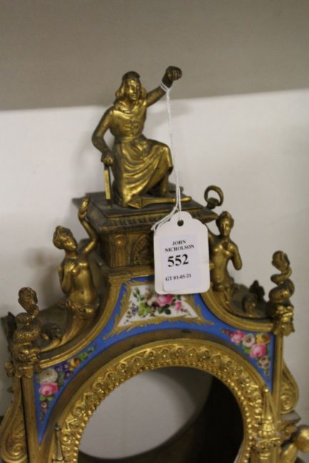 A 19th century ormolu mantle clock with Sevres style panels.