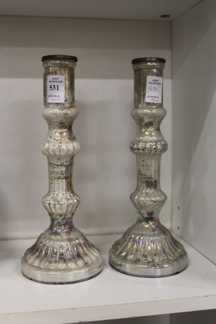 A pair of lustre glass candlesticks.