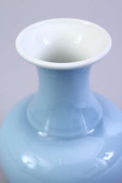 A GOOD DAOGUANG STYLE CHINESE SKY BLUE GLAZED PORCELAIN VASE, with a ribbed lower section and shoulder, the base with a six character daoguang mark. Private U.K collection. 15cm high.